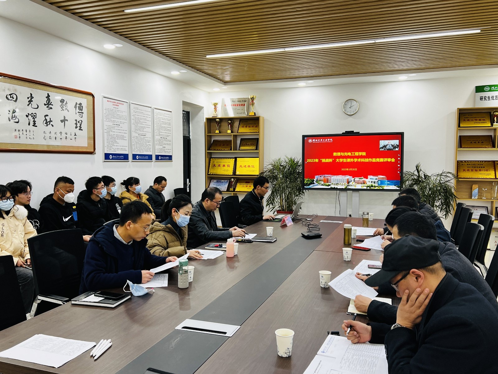 (本网讯)2023年3月21日下午,数理与英国正版365官网2023年“挑战杯”大学生课外学术科技作品竞赛答辩会在第一教学楼1126会议室举行,武汉产学研基地答辩代表通过腾讯会议参加会议,数理与英国正版365官网分党委书记张默、副院长胡政发、熊永臣,院长助理刘开拓、张传坤,光电科学与技术系、材料物理系、数学与应用数学系主任,物理实验中心主任担任本次答辩会评委并进行立项指导,共有14个参赛项目代表参会。