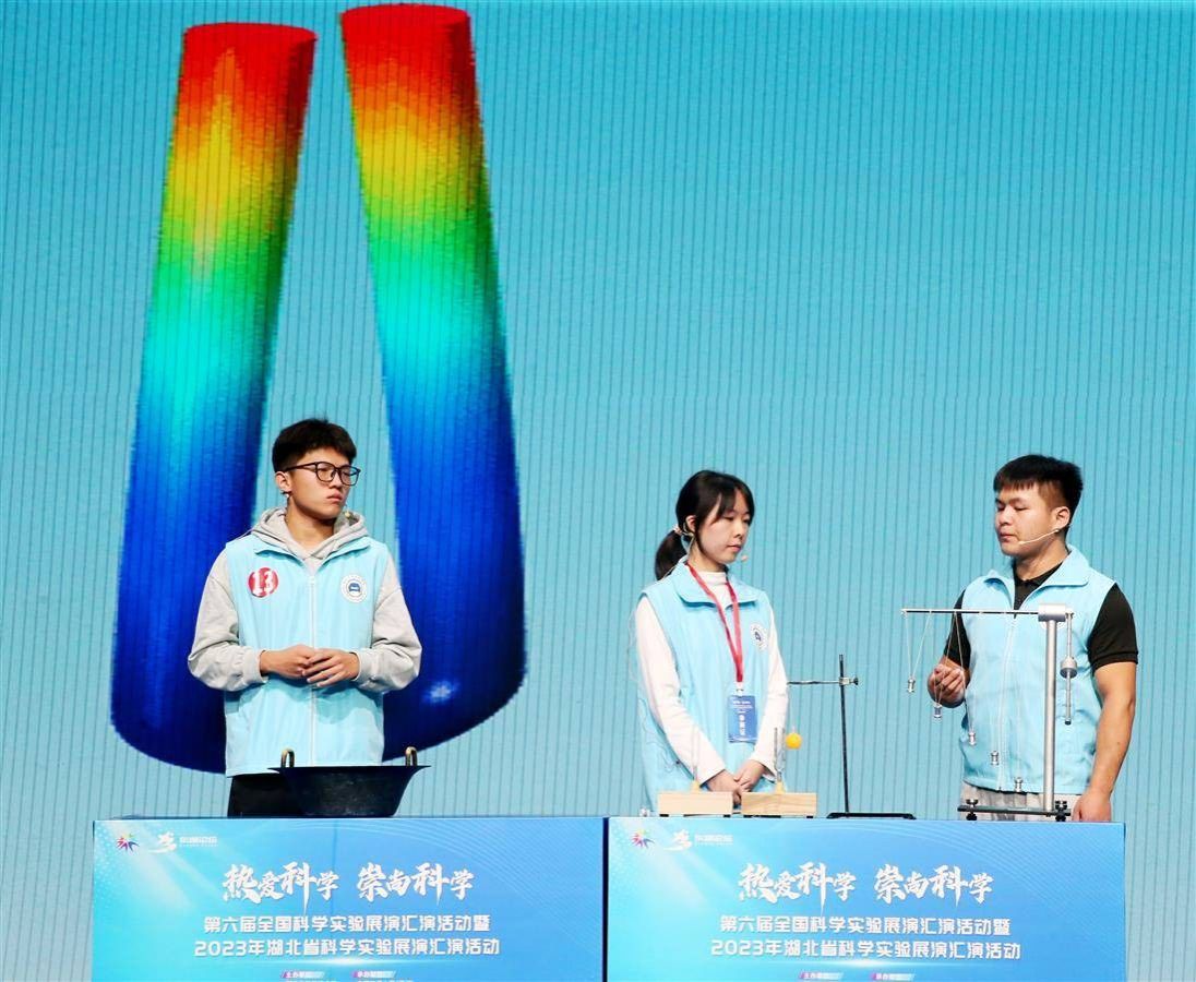 第六届全国科学实验展演汇演活动暨2023年湖北省科学实验展演汇演活动成绩揭晓,英国365官网数理与英国正版365官网学子张锦华、瞿麒莹、熊鑫颖同学组成的科普团队荣获三等奖,同时英国365官网也获得该项活动的优秀组织奖。