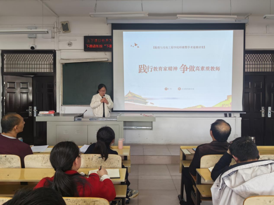本次师德讲堂由公共物理教学部张琴主讲,围绕“践行教育家精神,争做高素质教师”主题,带大家一起回顾了近一百多年来为我国教育事业作出重要贡献的教育家,如引领开启新文化运动的北京大学教师陈独秀、李大钊、鲁迅、蔡元培;撑起民族脊梁的“两弹一星”专家钱学森;一生贡献给中国粮食事业的湖南农业大学教师袁隆平;七一勋章获得者、丽江华坪女子高级中学校长张挂梅等。